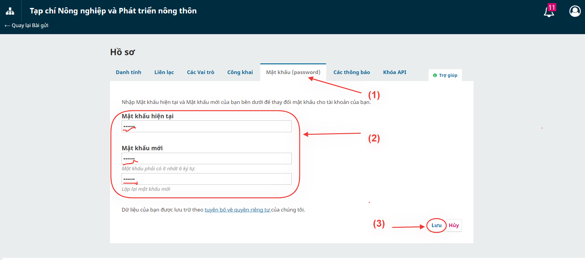 4. Điền mật khẩu mới khi được tạp chí nhắc